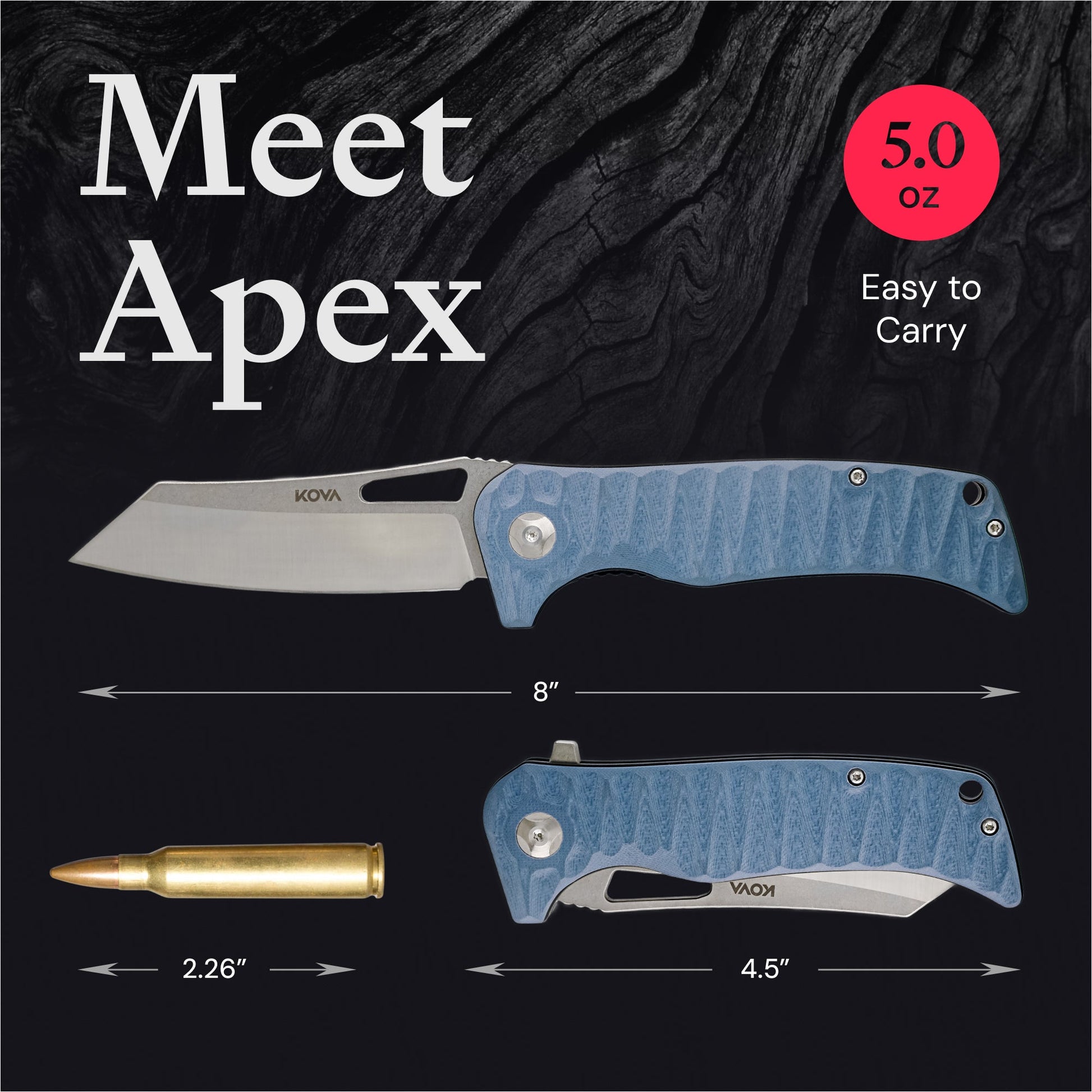 The KOVA Blade’s Apex combines bold, tactical aesthetics with precision-focused performance, offering a powerful 3.5-inch tanto blade and a rugged build ideal for both everyday carry and demanding situations. With a total length of 8 inches and weighing just 5 ounces, the Apex strikes the perfect balance between strength and agility.
