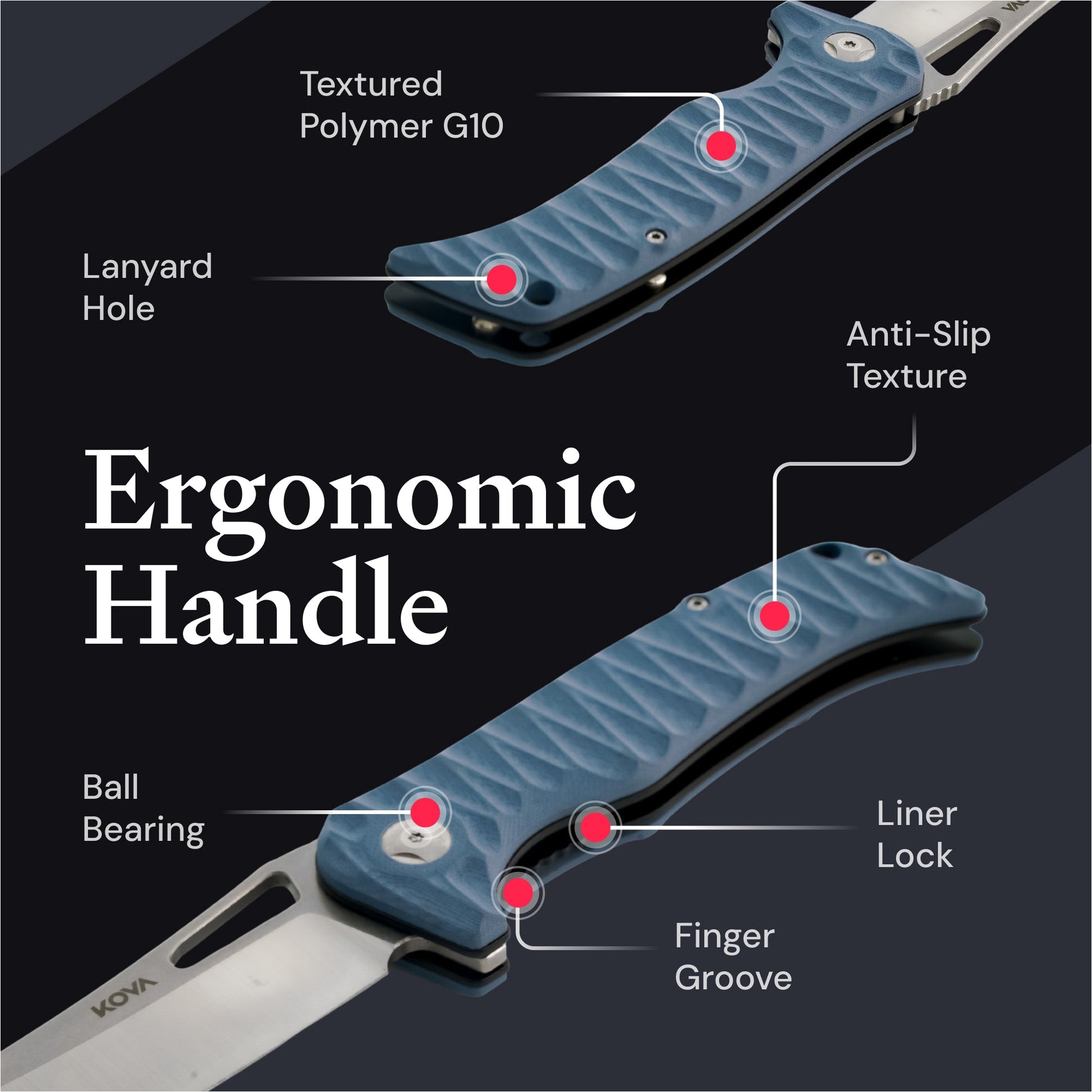 • Ergonomic Textured G10 Handle – Secure, comfortable grip for reliable control in all conditions.