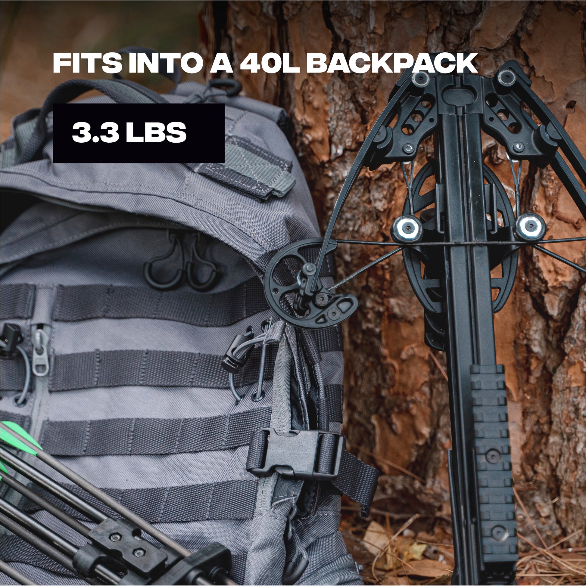 Fits into a regular backpack. Ballista BAT crossbow doesn't need a special case. It is so compact that it fits into a regular 30 litre backpack that you probably already have at home. Unlike other crossbows, Ballista BAT will not stick out or hang from your backpack, creating a lot of inconvenience for you.