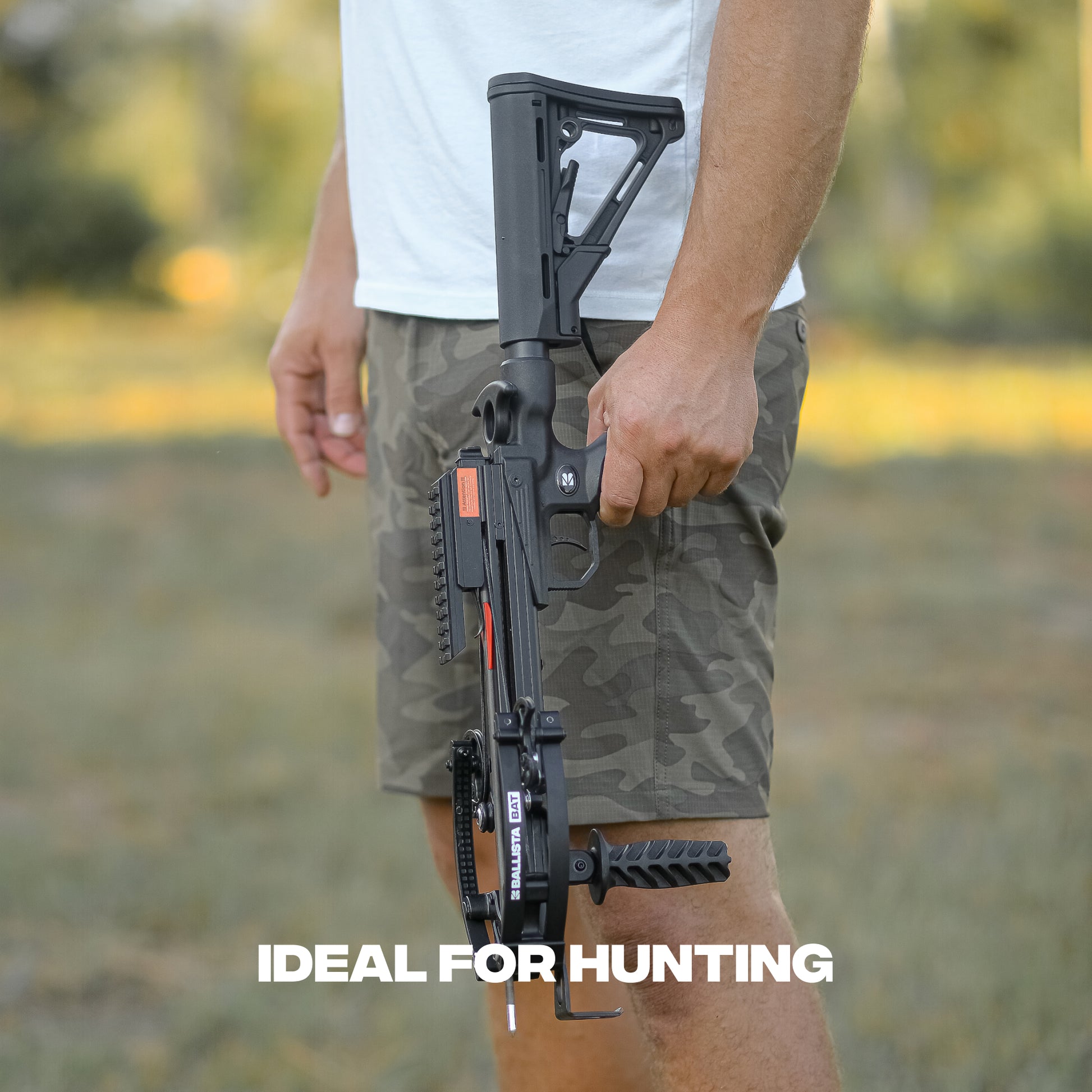 The world's most powerful compound mini crossbow.Ballista BAT is the only Compound mini crossbow with 130lbs limbs as standard. This significantly expands the scope of the crossbow's application. You can use this crossbow not only for recreation, sports and entertainment, but also for various types of hunting!