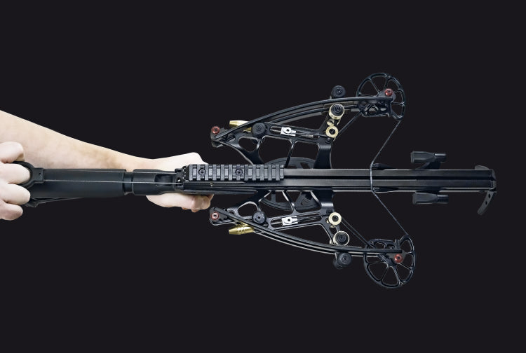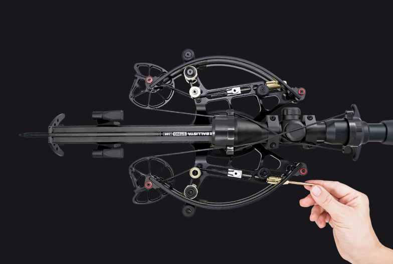 Ballista crossbows is the only crossbows in the world with a built-in self-retracting cord tensioner. With this technology, loading the crossbow is quick, easy and noiseless! Therefore, even women and teens can easily handle this crossbow. In cramped conditions, this system allows for instant and silent reloading. The cocking system is designed to make sure that the maximum force applied over the entire length of the stroke does not exceed 72 pounds.