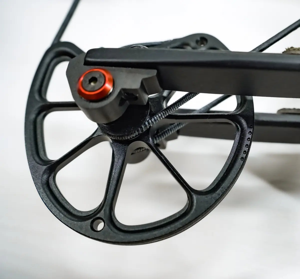 Each cam has two marks: the outer shows maximum tension, and the inner shows minimum. Tension is adjusted by tightening or loosening the cables with a hex wrench. You can fine-tune the draw force in small increments, allowing you to increase or decrease arrow speed by 30–40 fps. For more detailed adjustments, please refer to the User Manual.