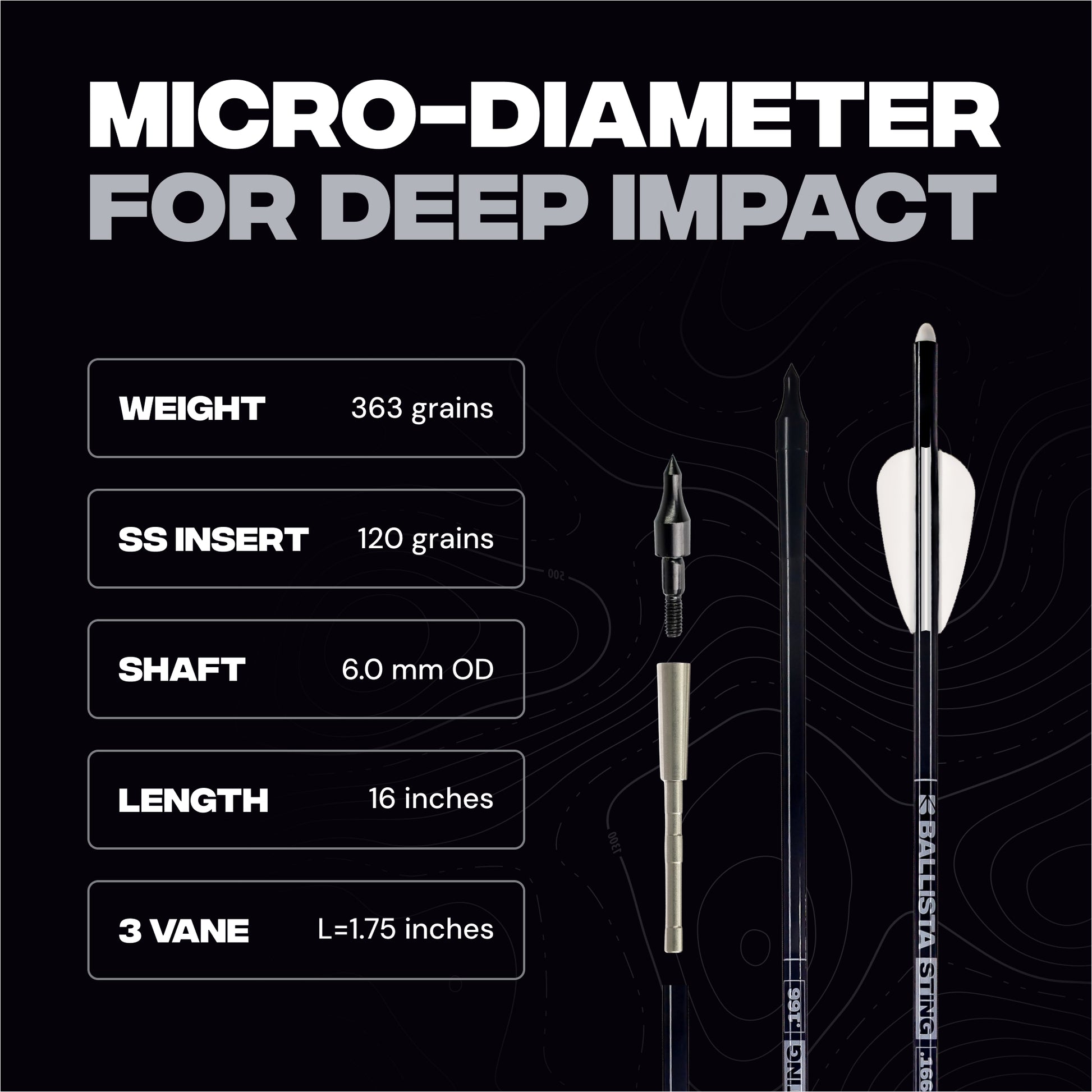 With their micro-diameter 6 mm profile, Sting bolts shed wind, keep velocity longer, and deliver the type of downrange consistency demanding archers expect. Each bolt weighs 360 grains, and every 3-pack arrives fully assembled and ready to shoot.