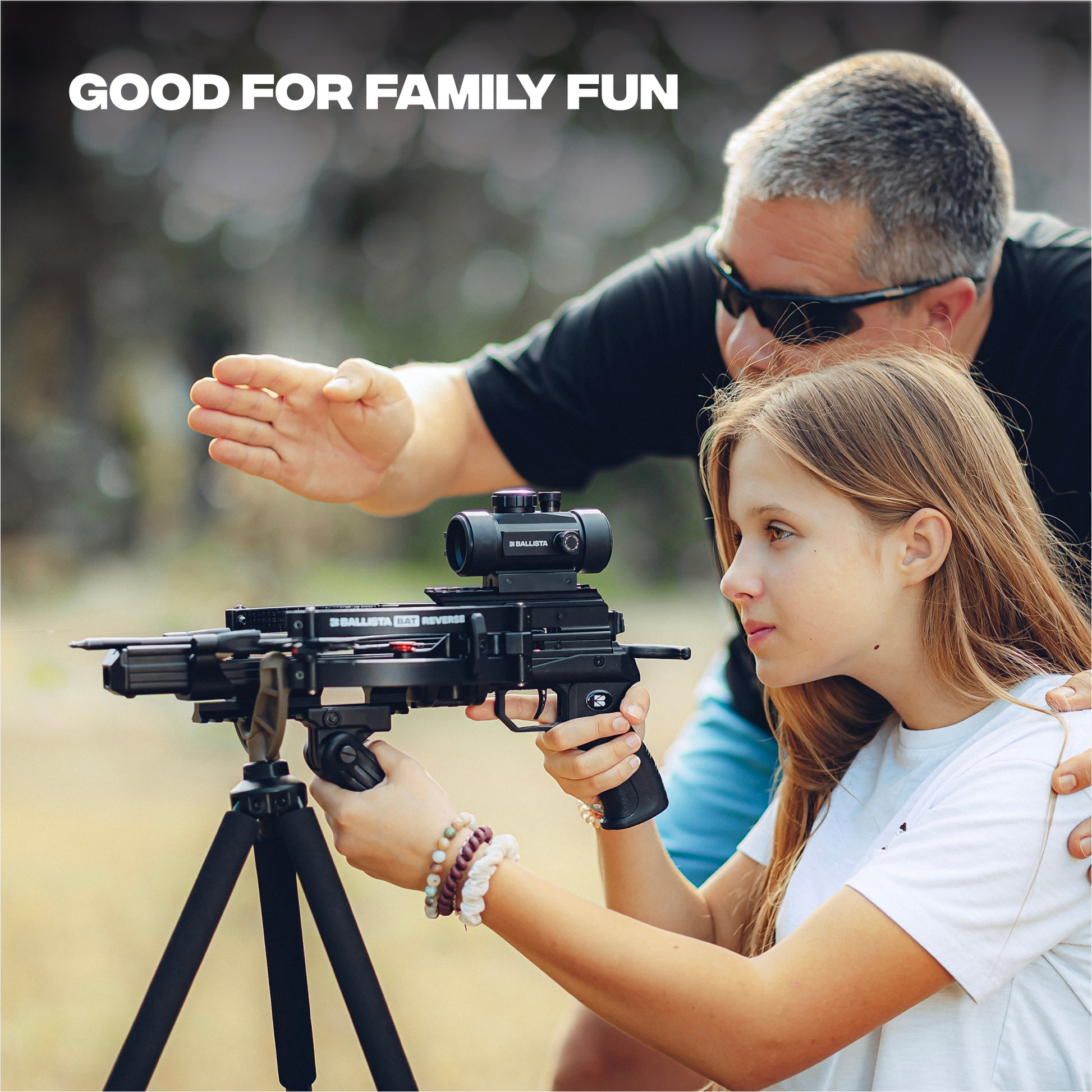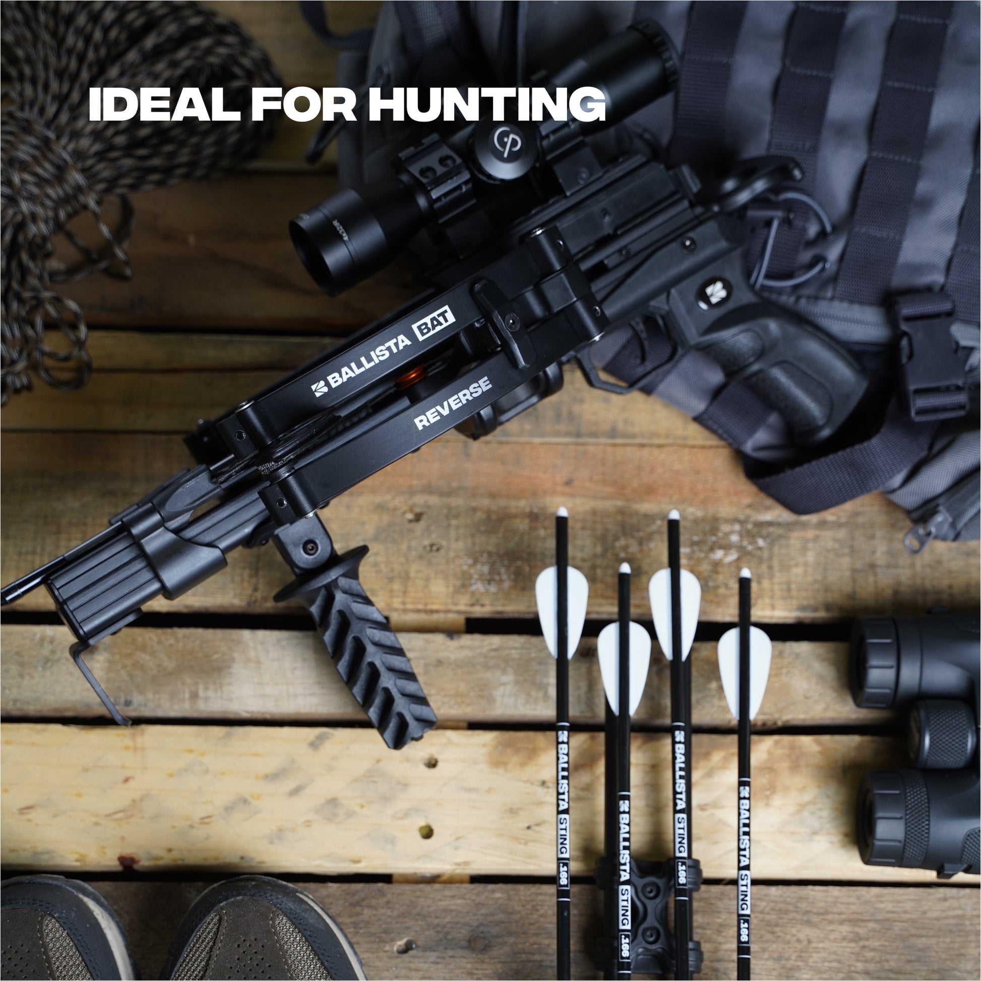 Discover the BALLISTA BAT Reverse Crossbow: the fastest 340fps self-cocking pistol crossbow on the market. With a staggering 150lbs of power packed into a lightweight frame of just 3lbs, it’s not only the world’s lightest but also boasts a speed of 340 FPS. The low friction mechanism combined with its unique design ensures that every shot is precise and powerful. Whether you’re a seasoned archer or a beginner, this crossbow is designed to elevate your shooting experience to new heights.