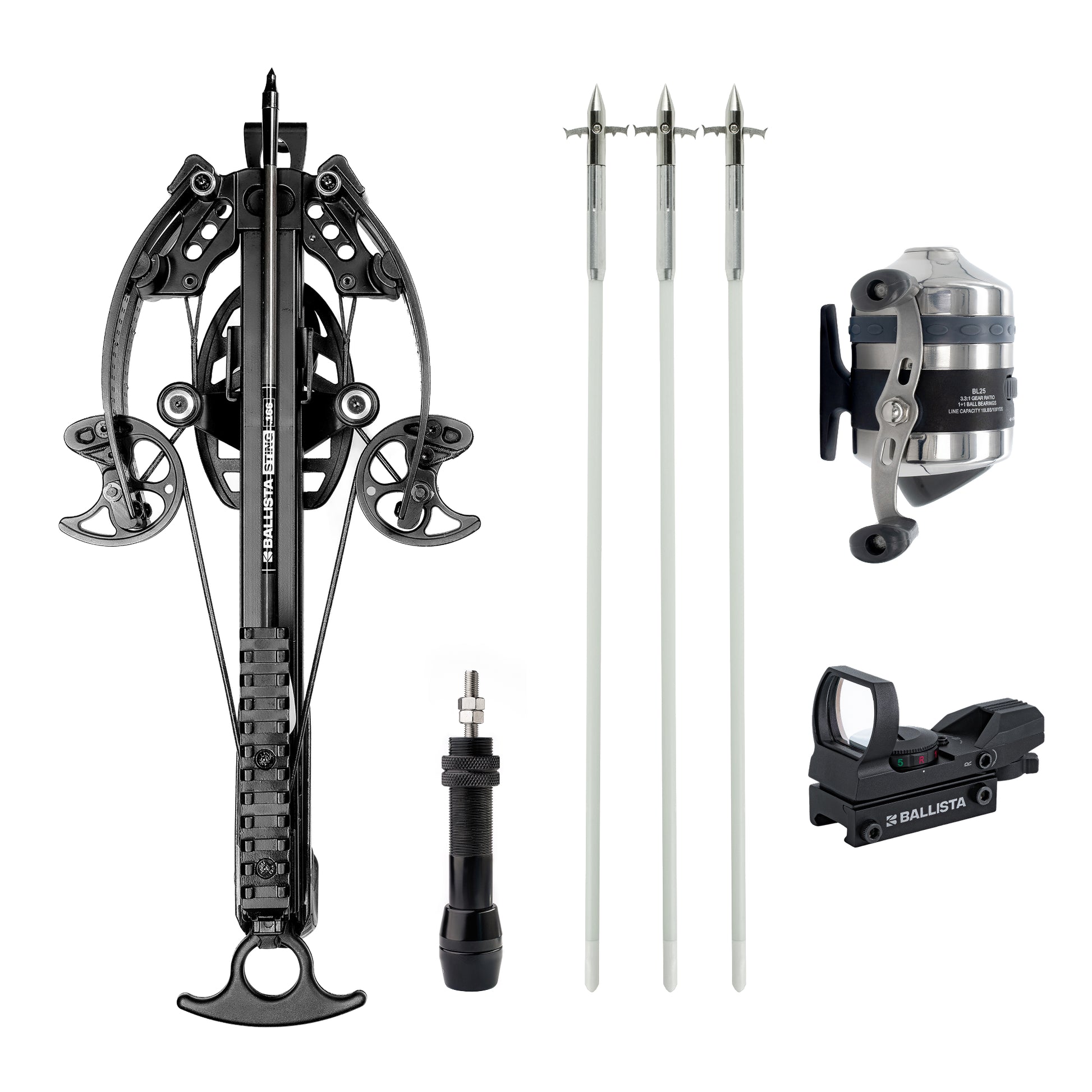 Dive into bowfishing with the BAT Bowfishing Bundle, perfect for anglers targeting small to medium-sized fish. This all-in-one package includes everything you need for a successful fishing adventure: the precision Ballista BAT crossbow, a set of 3 bowfishing arrows, a sturdy reel mount, the reliable Ballista BL25 Spincast reel, and a tactical red dot sight for enhanced accuracy.