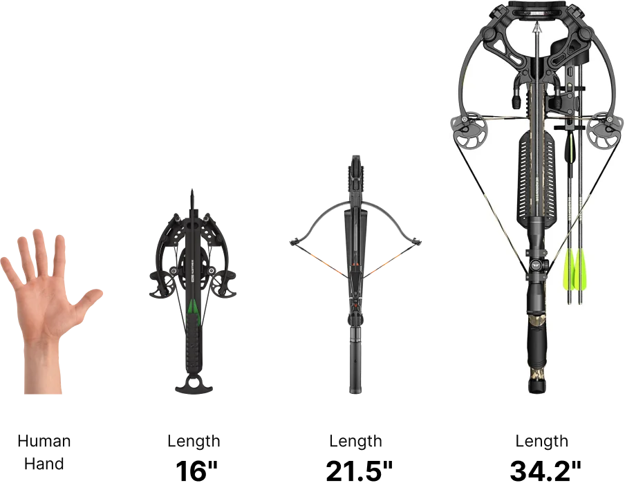 The width of the crossbow when loaded is even less than the average palm of a person. It is so convenient in use that sometimes it may seem like you’re using a handgun instead of a crossbow. Forget the uncomfortable bulky devices and enjoy shooting!