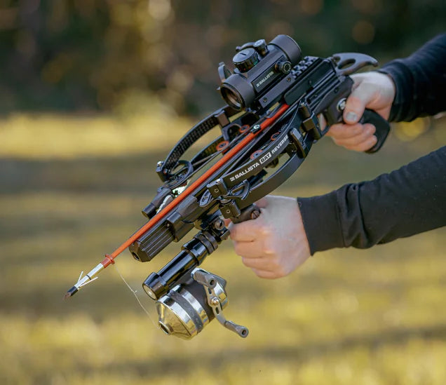 Ballista BAT Reverse Crossbow can be used for bow fishing by installing a regular spinning reel or a special bow fishing one.