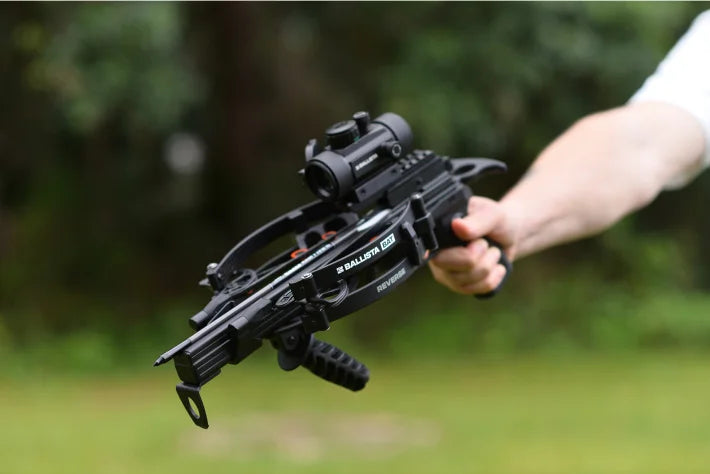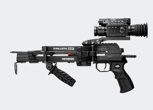 Ballista BAT reverse is the revolutionary crossbow on the market.This is the world’s fastest reverse-draw Pistol Crossbow.The reverse-draw limbs and differently shaped cams lengthen the power stroke and increase the force acting on the bolt. This allows the crossbow to reach bolt velocity ofup to 420 FPS, which regular compound crossbows can only dream about.