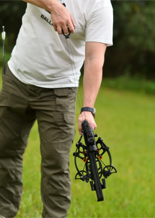 Ballista BAT is theworld’s lightest crossbow with an arrow speed of up to 330 FPS. The unique design of the crossbow uses additional polistpasses of the sliderless cable system – the least amount of friction between parts among all crossbows. The minimum of plastic parts. The possibility of changing the position of the polistpasses provides for an algorithm for self-accelerating the crossbow above the nominal value.