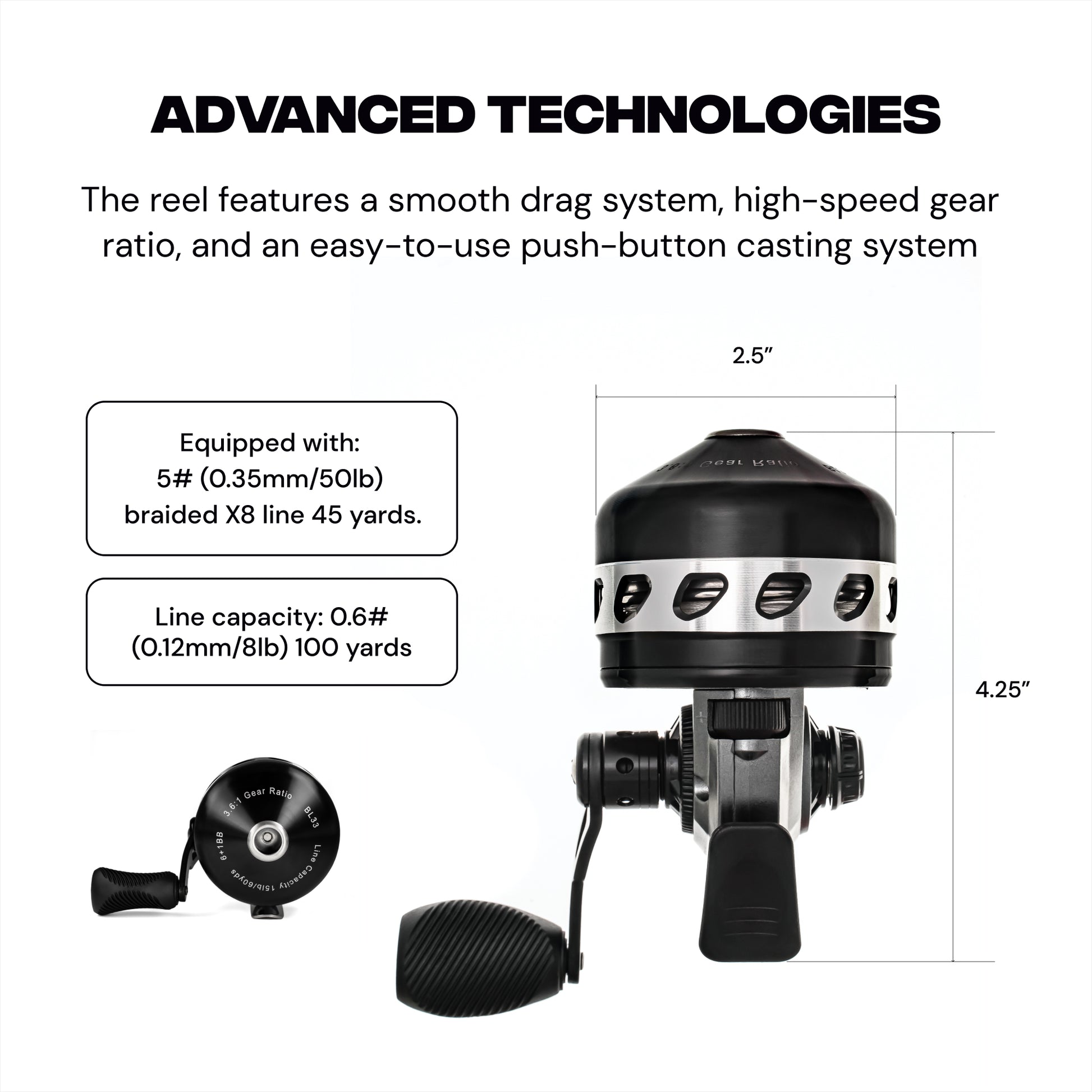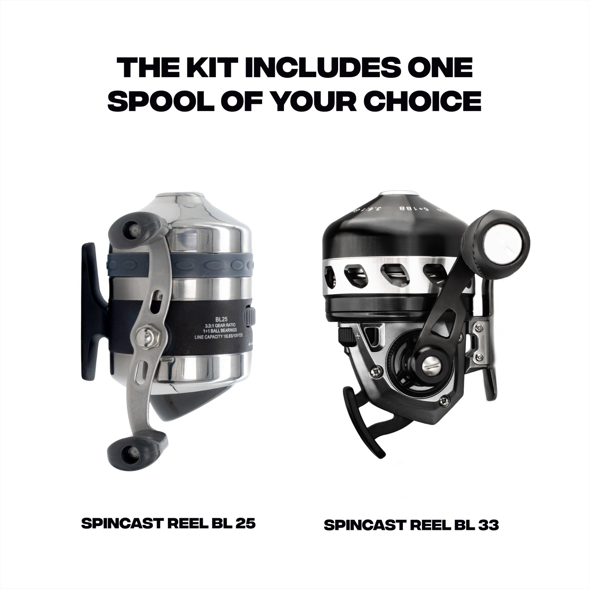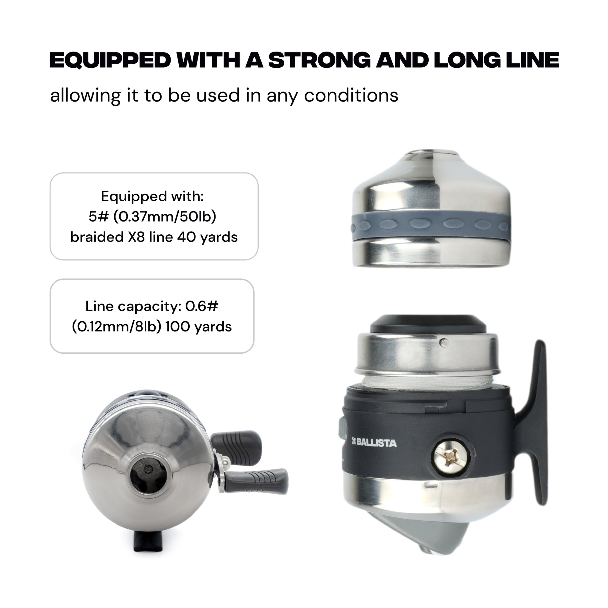 - 1 Reel based on your choice: BL33 Spincast Bowfishing Reel: Featuring a 3.6:1 gear ratio, stainless steel construction, and a reversible handle for left or right-hand use. Equipped with 45 yards of strong 5# line (0.35mm/50lb).Or BL25 Spincast Bowfishing Reel: Reliable and sturdy with a 3.3:1 gear ratio, 8LB/100YDS line capacity, and 1+1BB ball bearings. Comes with 40 meters of 5# strong horse line.