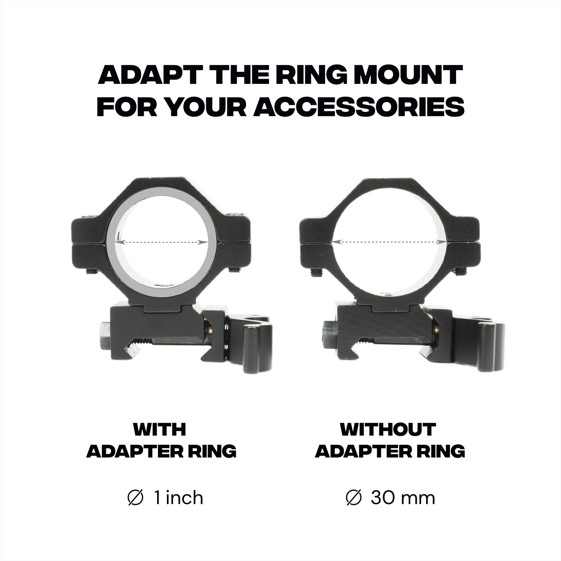 - 1x Ring Mount: Quick-release aluminum alloy mount for 25.4mm/30mm scopes or flashlights, fitting standard 20mm rails.