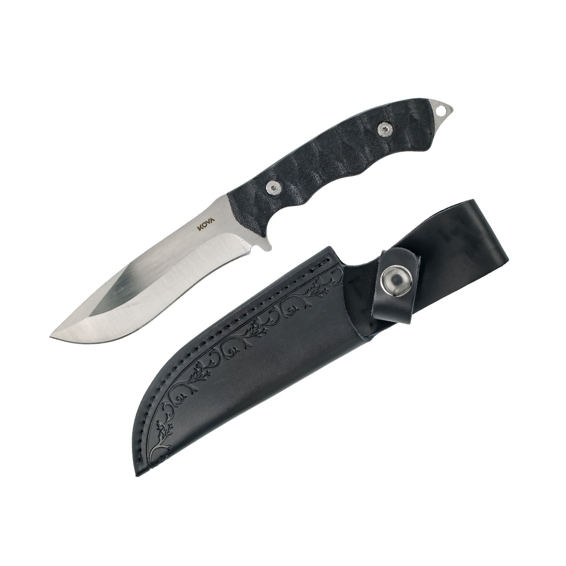Designed for high-performance use, the Eclipse features full-tang construction and a choice of textured G10 or carbon fiber handle, ensuring a secure and ergonomic grip even in harsh environments. A lanyard hole adds versatility, while the custom-stitched leather sheath allows for secure and convenient carry. Weighing 5.9 ounces, the Eclipse is lightweight yet solid—perfectly balanced for fast and controlled handling.