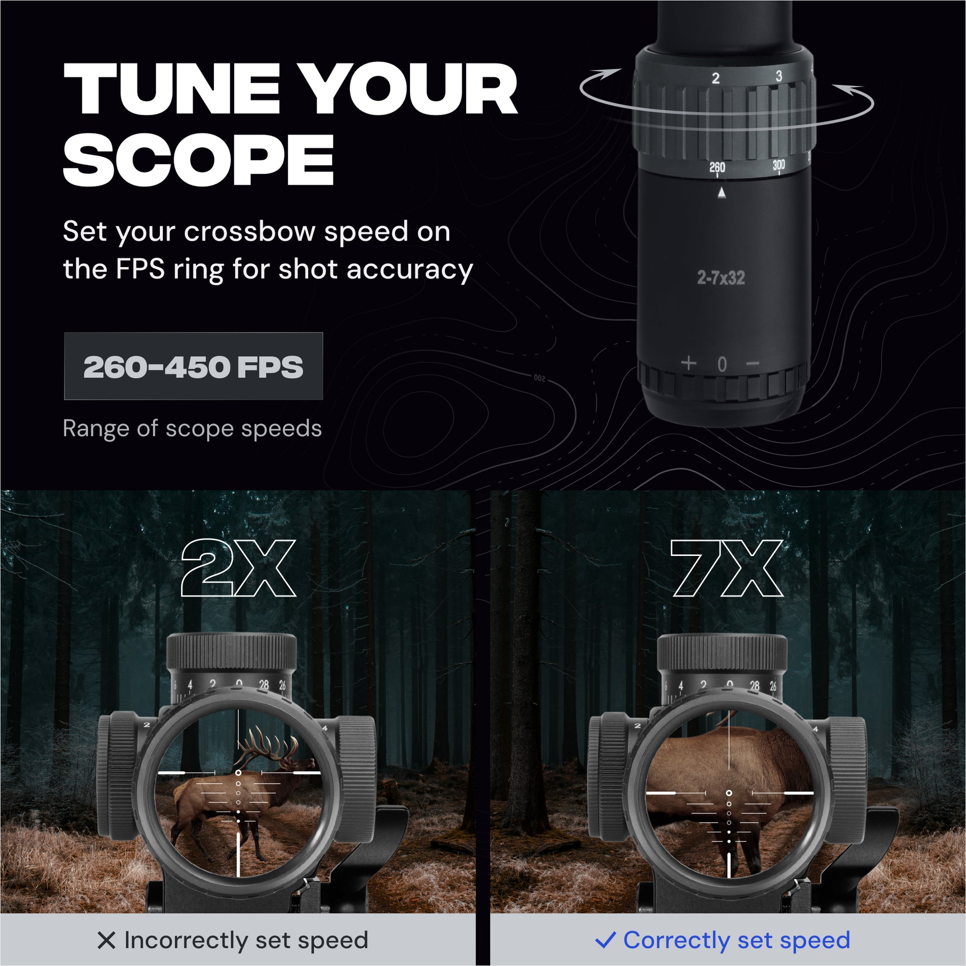 With its rugged construction, superior optics, and crossbow-specific calibration, the BALLISTA Falcon Flex 2-7x32 is the ultimate hunting and target shooting companion.