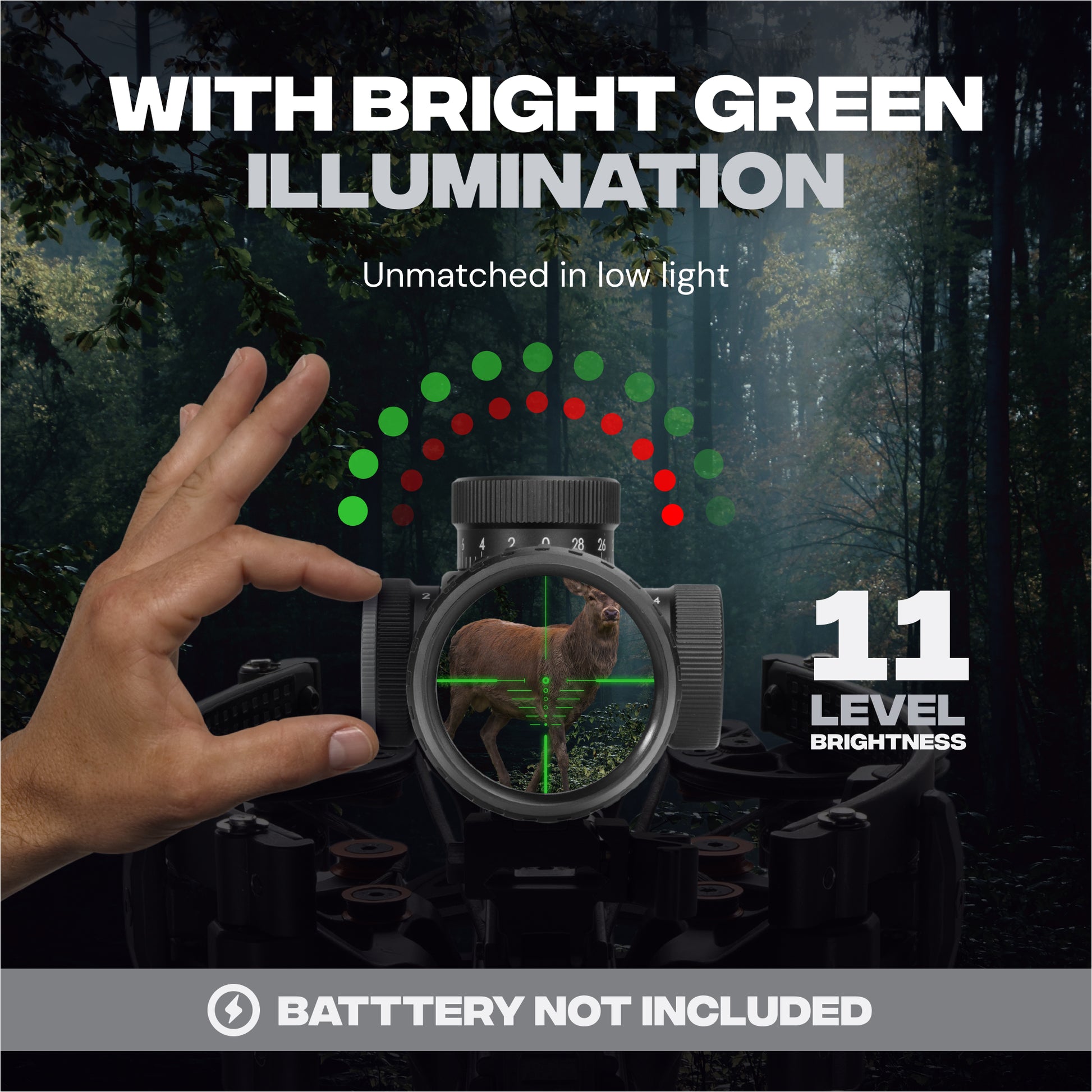 The green illuminated reticle with 11 brightness levels ensures superior visibility in low-light conditions, making it perfect for dawn and dusk hunting. The fully multi-coated (FMC) lenses provide crystal-clear optics with enhanced light transmission, delivering sharp, high-contrast images.