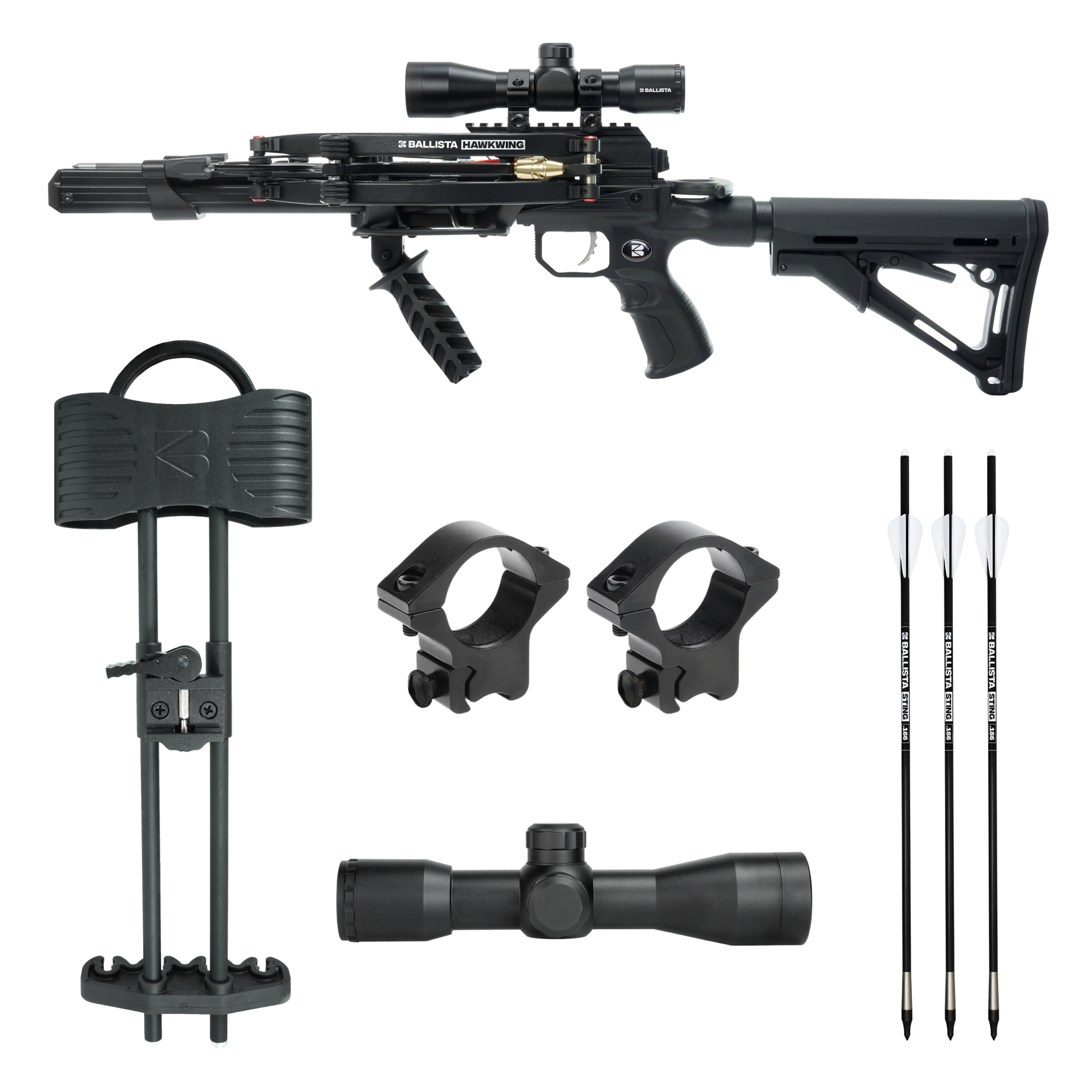 The BALLISTA Hawkwing Hunting Bundle gives you a complete, dialed-in setup built around our press-free Hawkwing crossbow. Pairing a fast, compact L-Stock platform with a 4x32 Viper Eye scope, universal Picatinny quiver, and STING 16" micro-diameter bolts, this kit is ready for serious hunting and precision target work right out of the box.