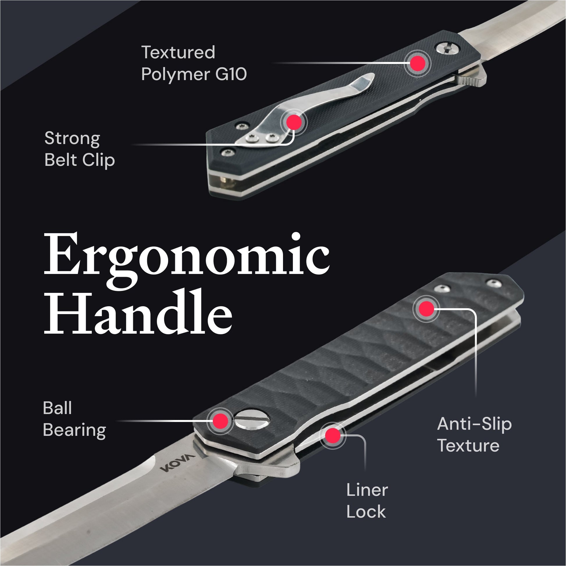 - Textured G10 Handle with Hexagonal Pattern – Secure and ergonomic with katana-inspired design.