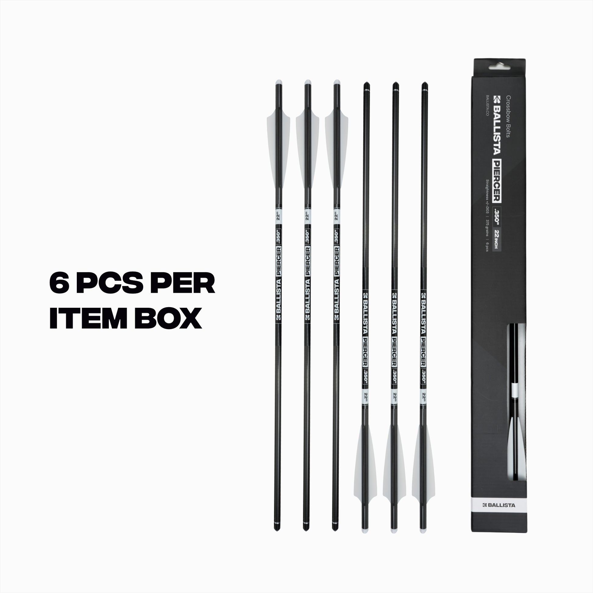 Elevate your crossbow shooting experience with Ballista PIERCER Crossbow Bolts. Designed for both compound and recurve crossbows, these bolts are engineered for precision, durability, and superior performance. Whether you're a sports shooter or a hunter, our bolts offer unmatched accuracy and reliability. Crafted from pure carbon and featuring a special varnish coating, these bolts are perfect for high-density target shooting and are easy to remove from tough targets. The changeable tips and robust design ensure that you get the best value without compromising on quality.