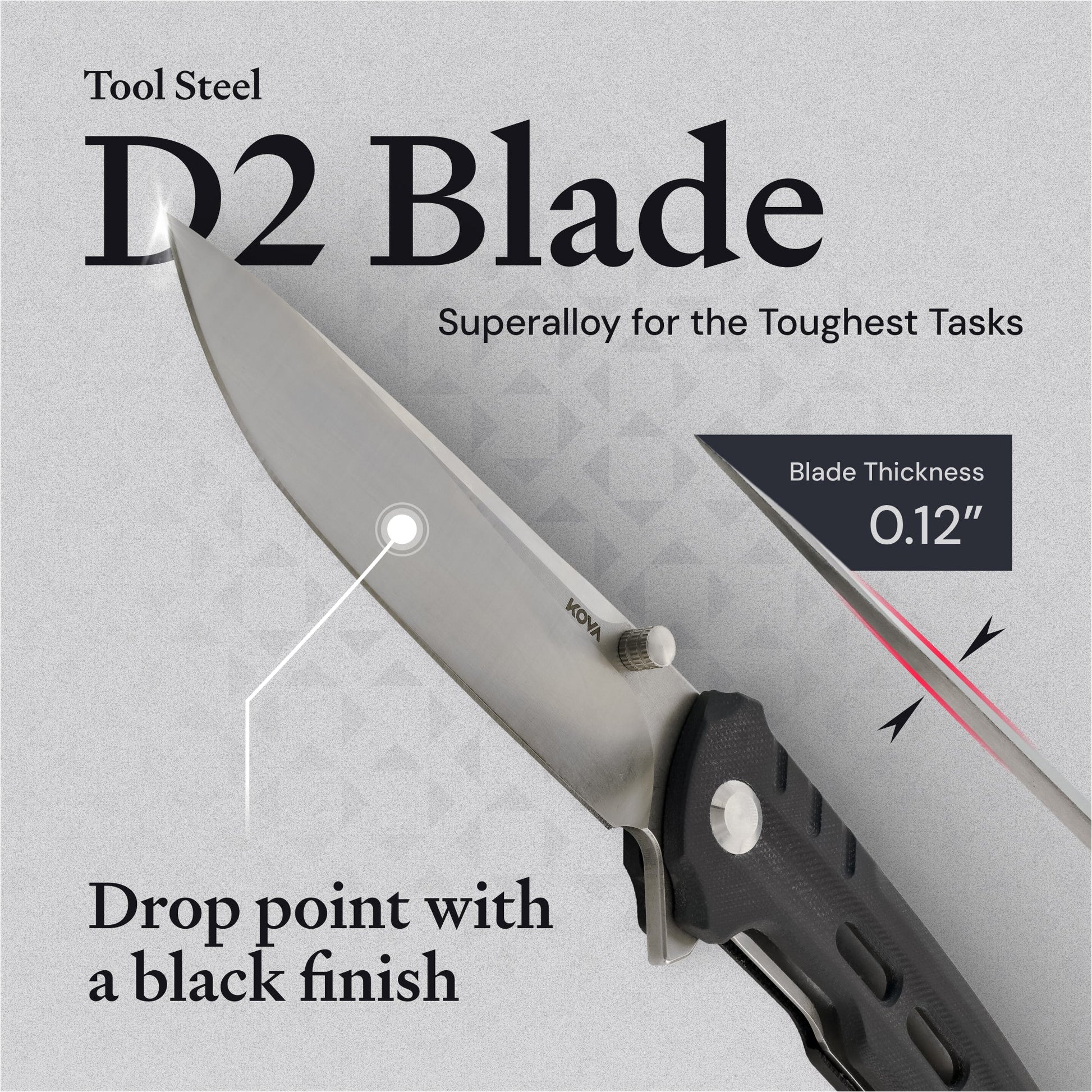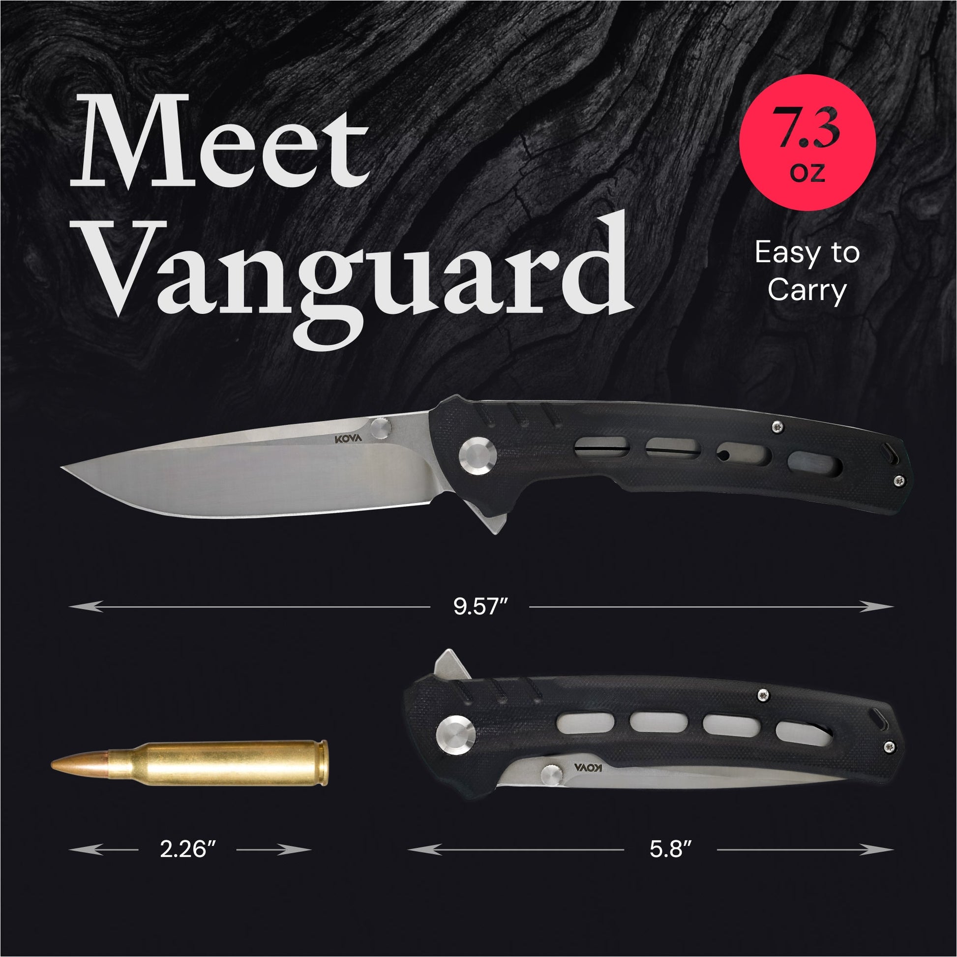 The KOVA Blade’s Vanguard delivers proven strength, tactical versatility, and sleek aesthetics—perfect for those who value performance and stealth in one refined folding knife.