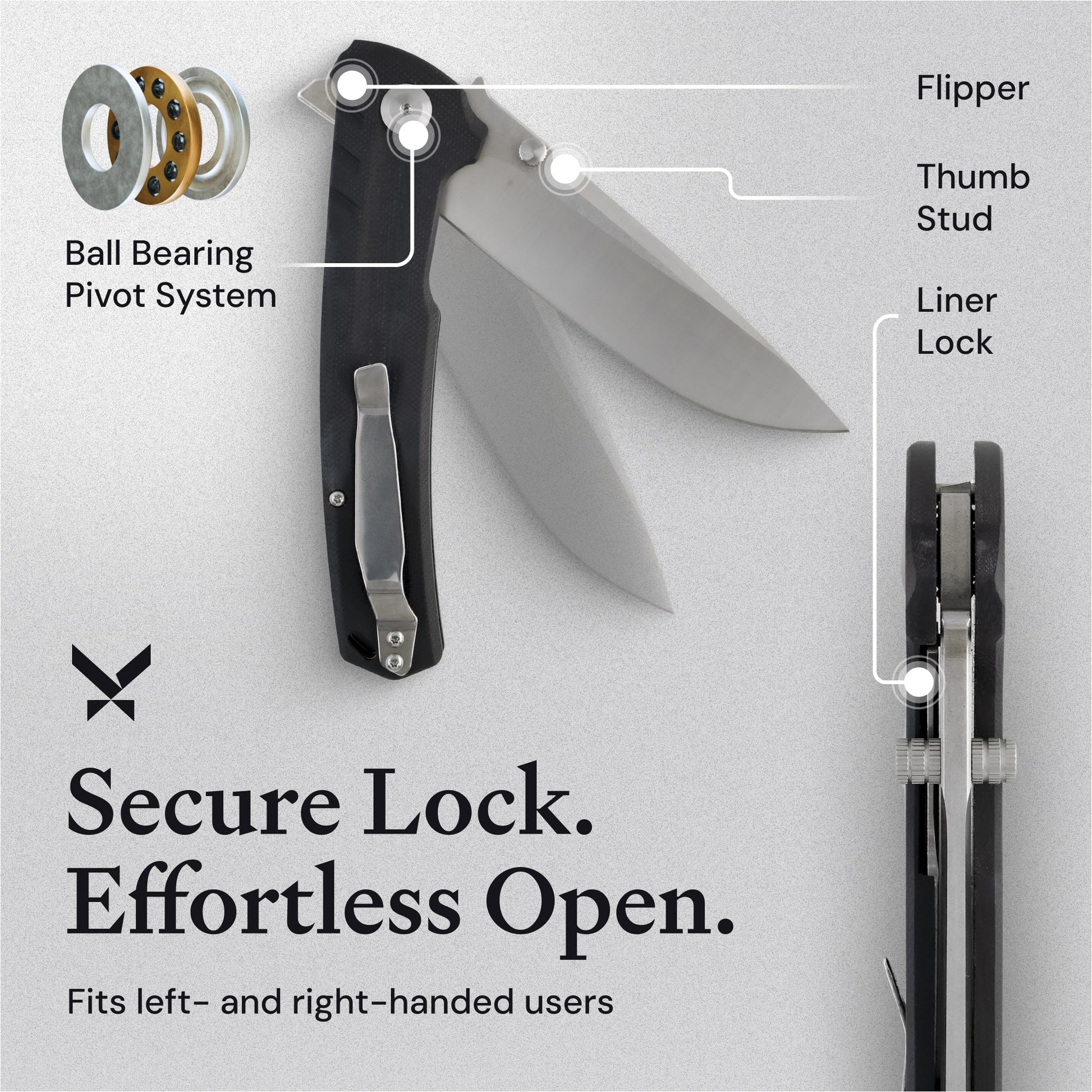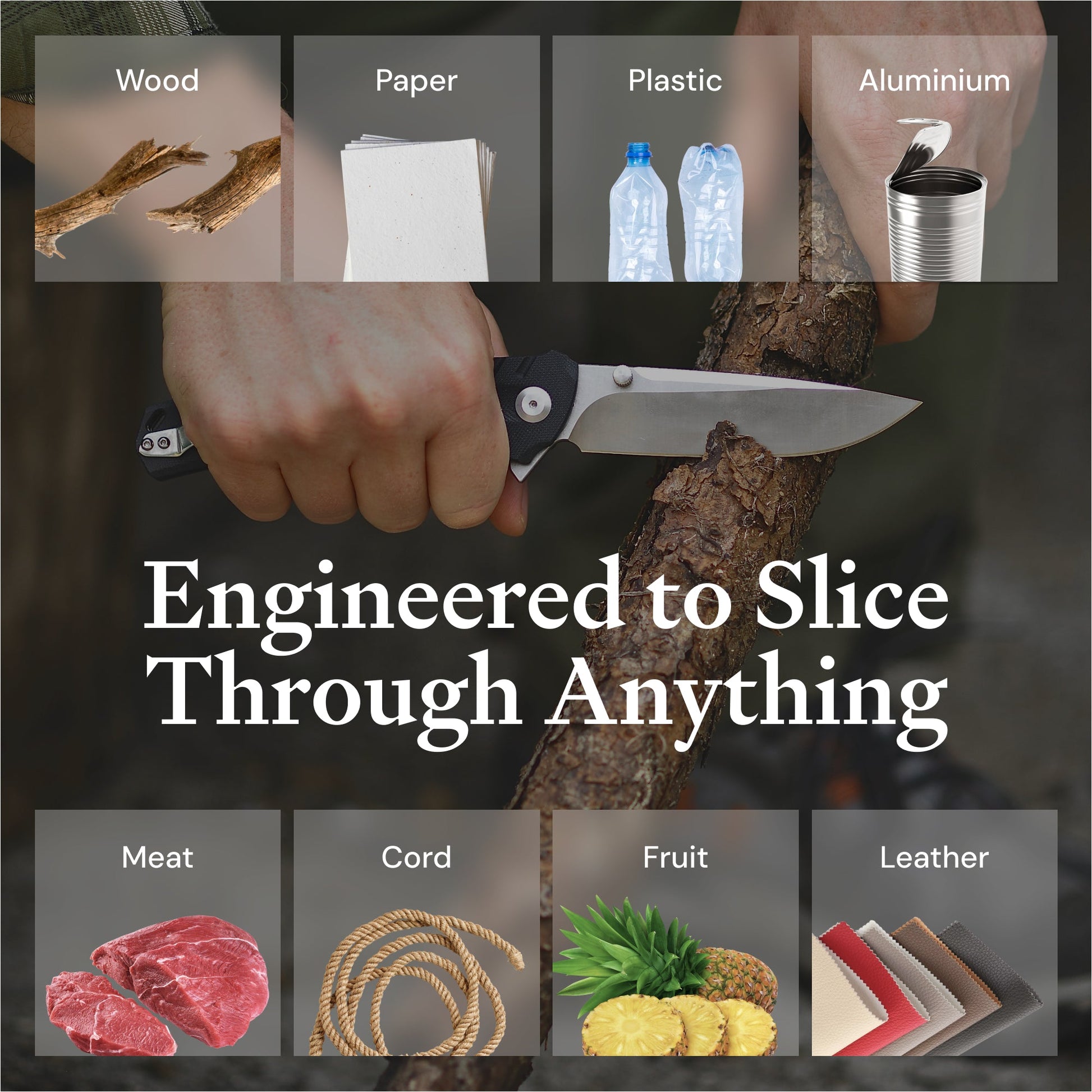 - Fast & Smooth Deployment – Flipper tab and ball-bearing pivot system deliver effortless, one-handed blade access.