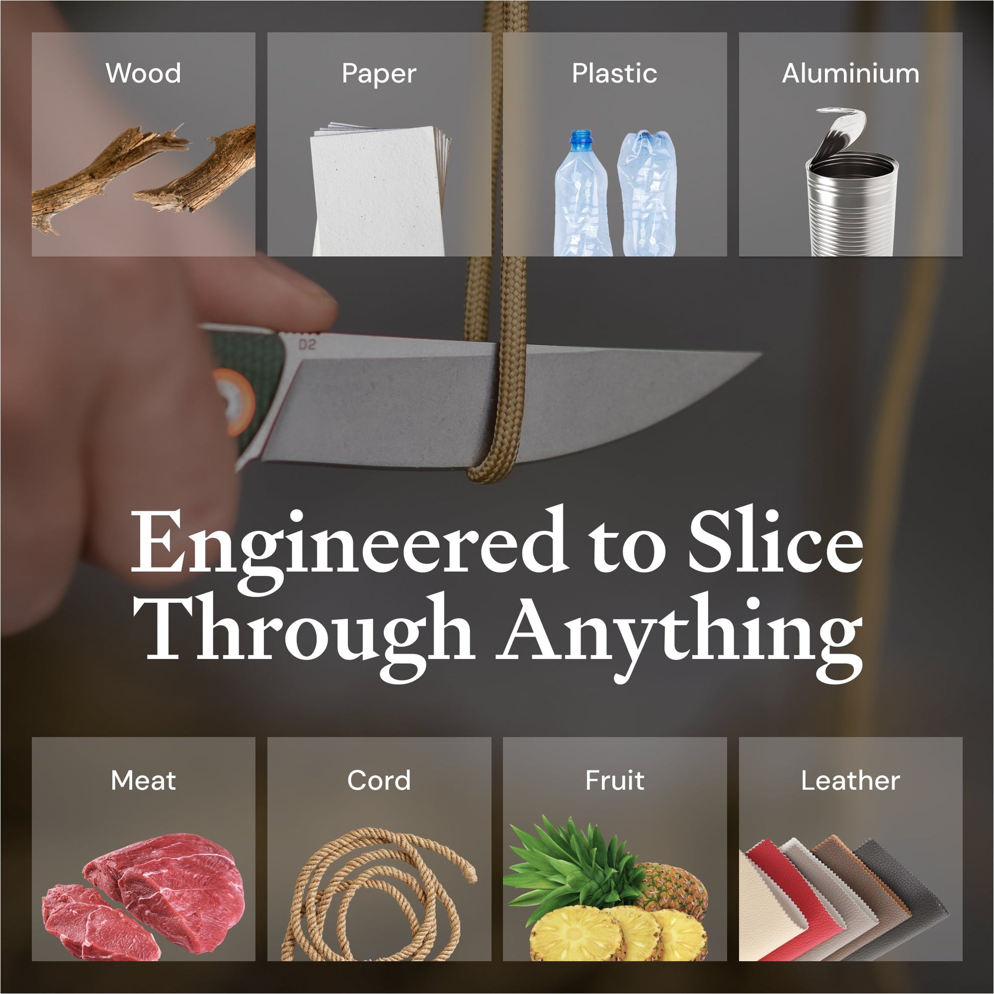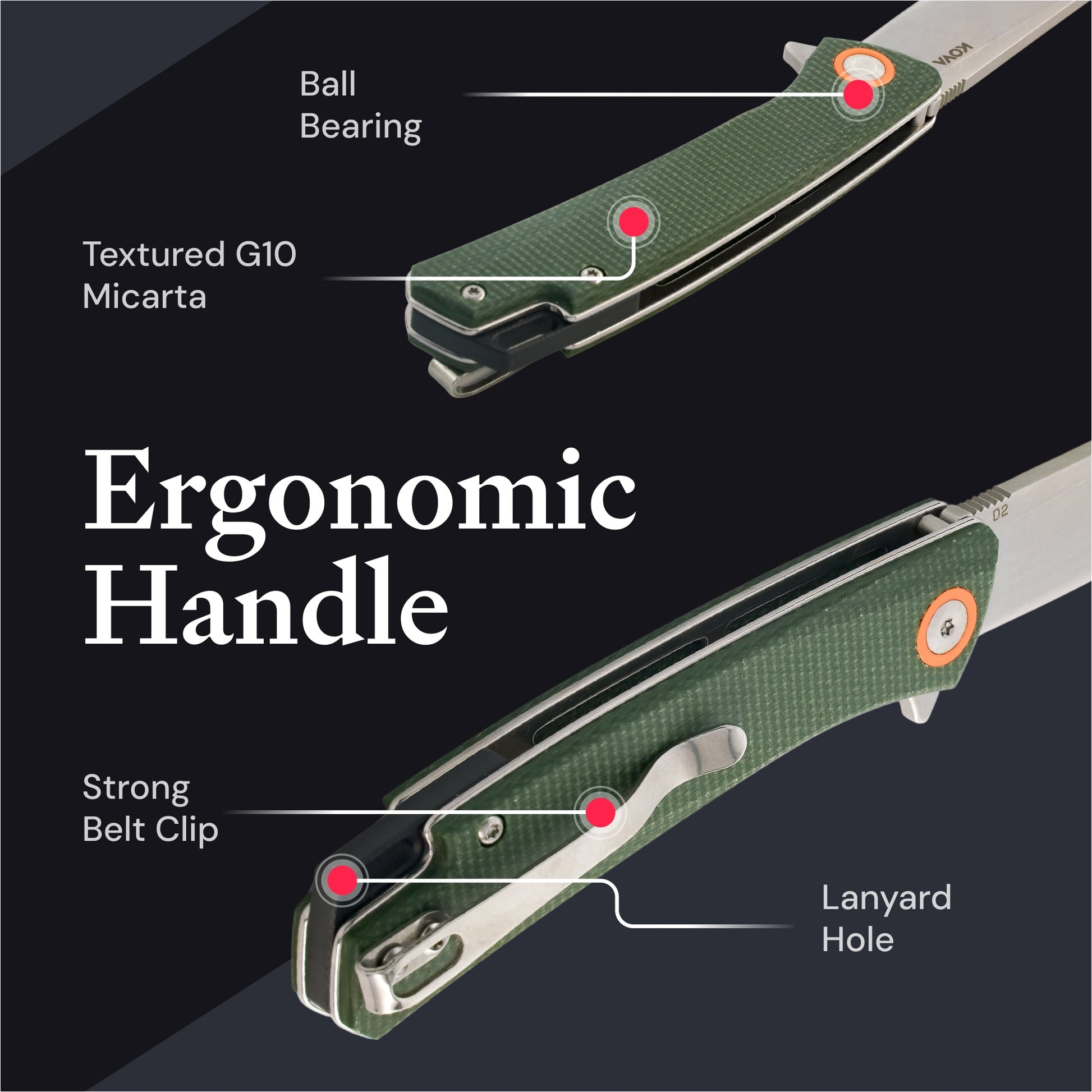 - Textured G10 Micarta Handle – Comfortable, secure grip with ergonomic feel.