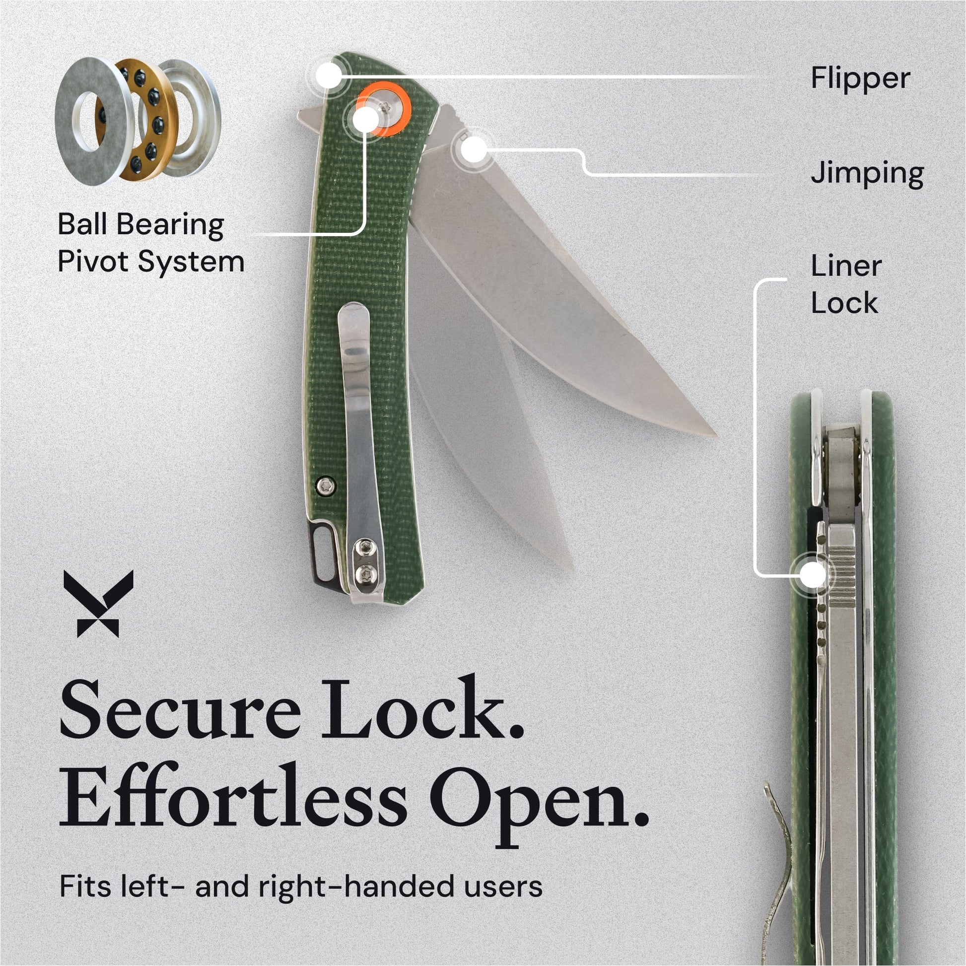 - Quick One-Handed Opening – Flipper tab with smooth ball-bearing deployment.