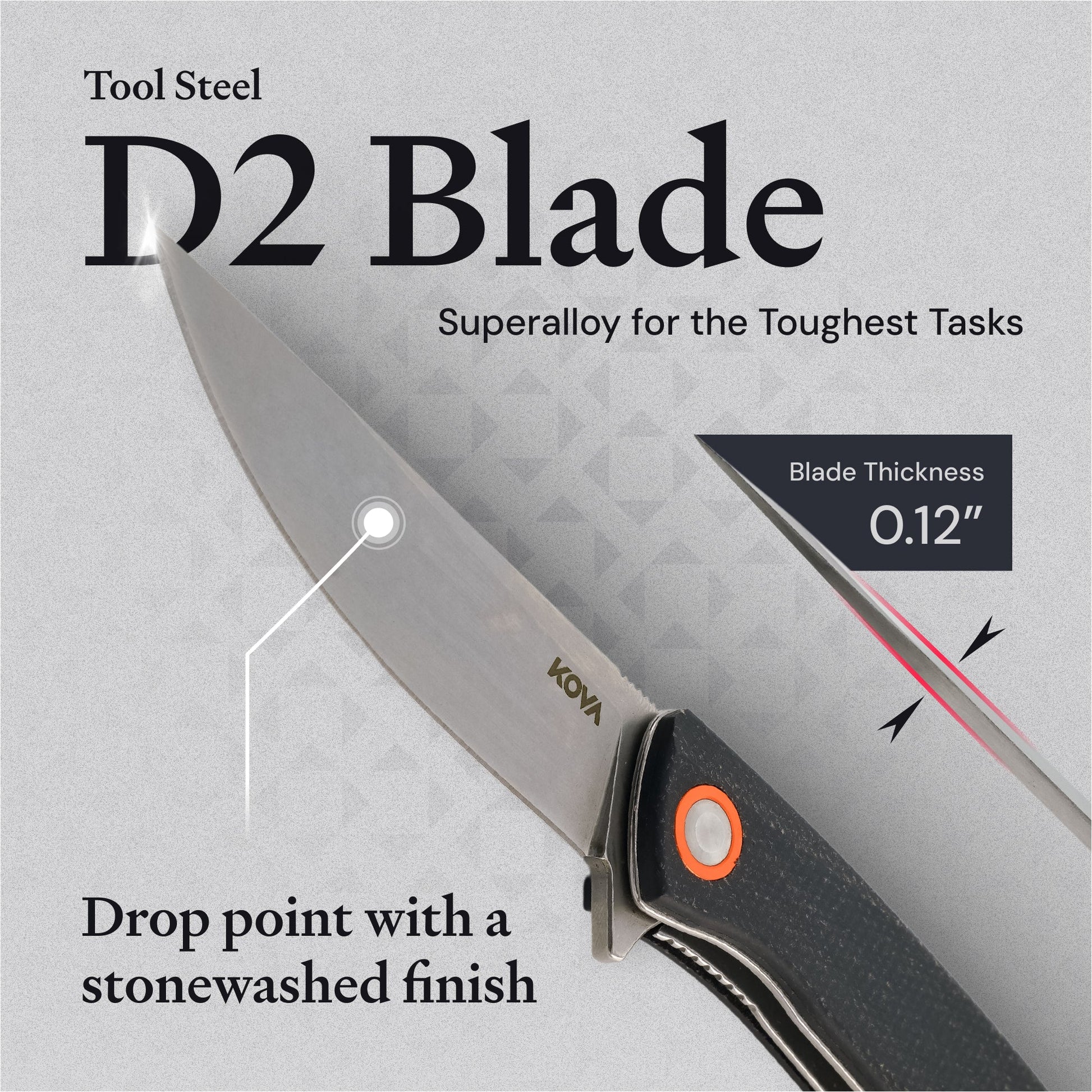 - Durable & Reliable Blade – D2 steel drop point blade (2.95 inches) with a satin finish for extreme wear resistance and longevity.