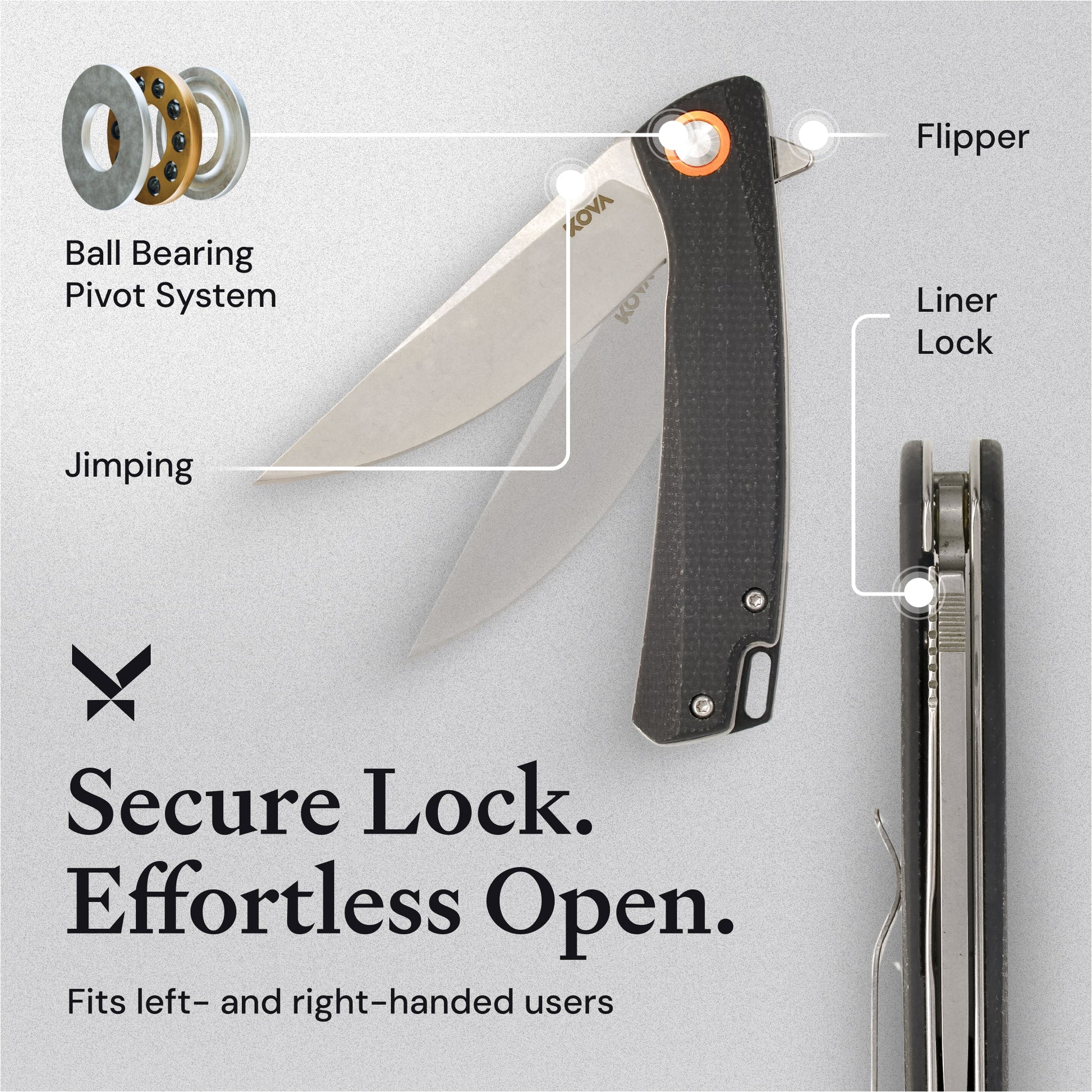 - Fast & Effortless Deployment – Ball-bearing pivot system ensures ultra-smooth, one-handed opening with the flipper tab.