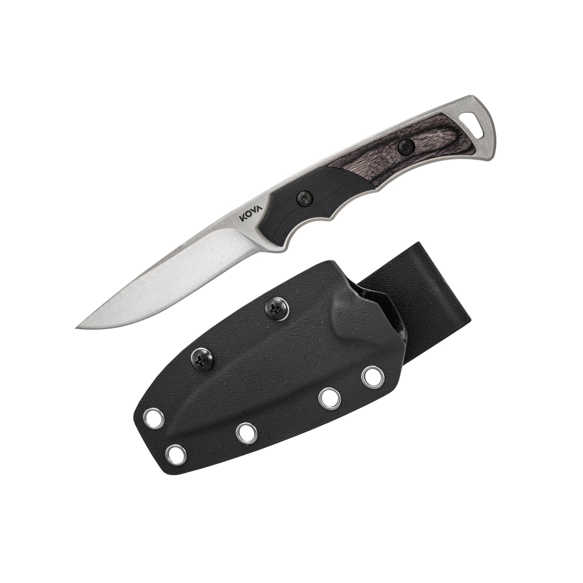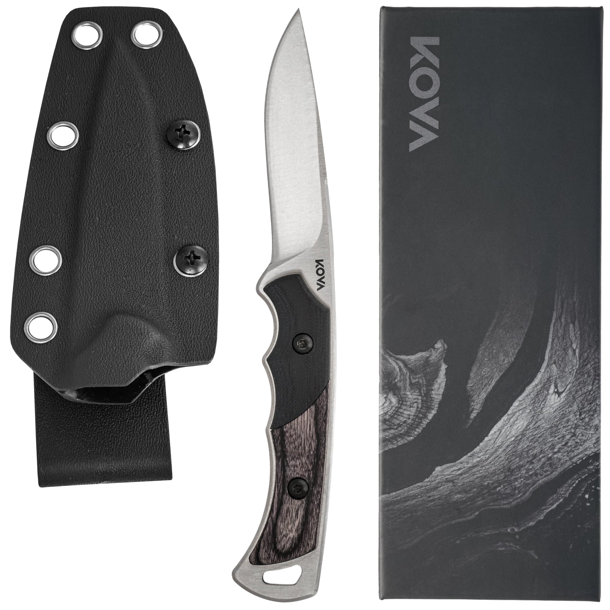 The full-tang construction ensures strength and reliability, while the textured G10 handle offers a firm, ergonomic grip, even in high-stress or wet environments. Weighing just 3.5 ounces, the Woolshire is lightweight for all-day carry without sacrificing performance. The custom-molded Kydex sheath includes a secure clip for vertical or horizontal carry options, ensuring fast access when needed.