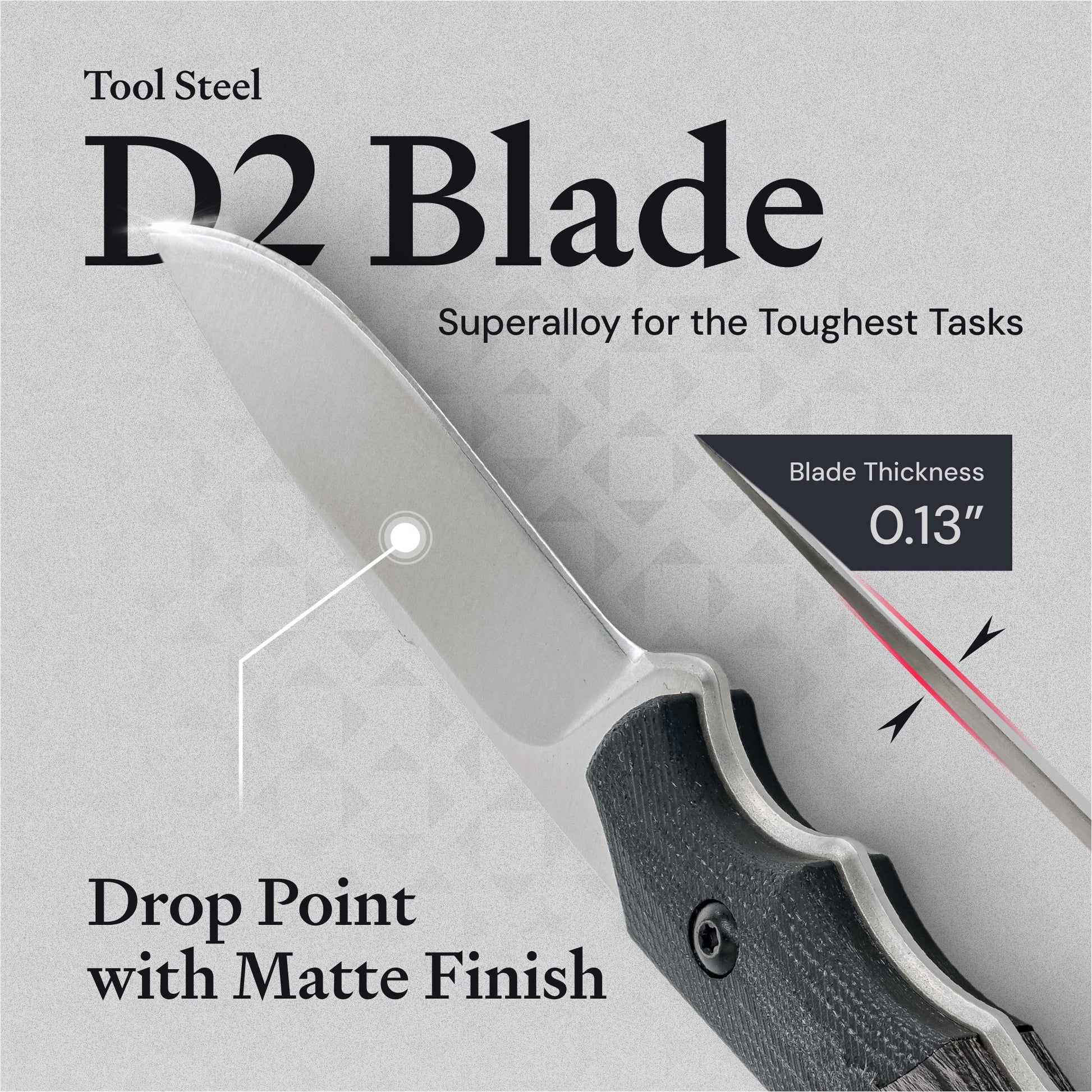 - 3.25" D2 Tool Steel Blade with Matte Finish – Strong, corrosion-resistant, and optimized for controlled cutting.